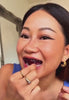Vijolična barva nevtralizira rumene odtenke na zobeh in jih naredi beljše. Ali ni to super?